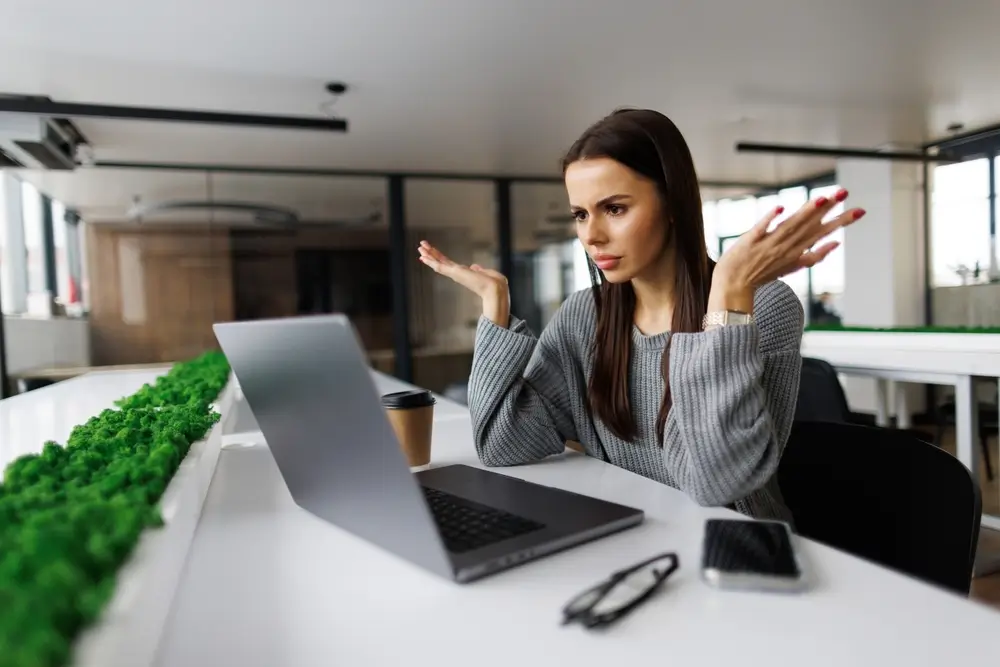 Upset woman reading a bloated website